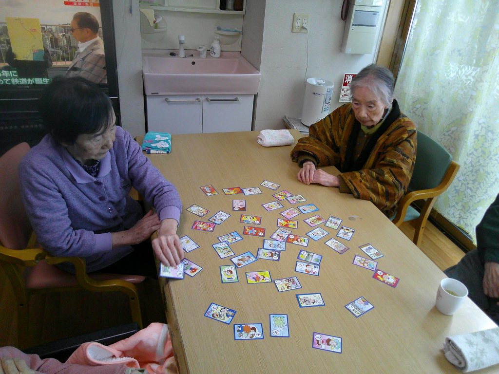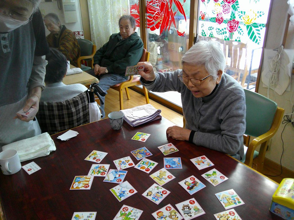 節分の時期には、カルタ遊びも楽しまれました。札を見つけると「はい!」と手を伸ばされ、真剣な表情の中にも笑顔が見られ、和やかな雰囲気の中で取り組まれていました。皆さまそれぞれのペースで参加され、にぎやかで楽しい時間となりました。